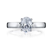 Using a slender band of white gold, this oval-cut diamond is perfectly set in a halo of shining stones. While the ornately set gems frame the piece's shape, the diamond brings a fullness and beauty that makes it the perfect accessory for a night out. "Available in White, Yellow and Rose Gold".